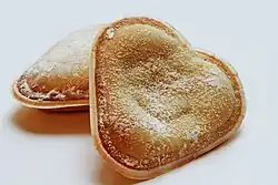 Vanilla hearts, or vaniljhjärtan in Swedish, is a type of pastry made of shortcrust dough formed into hearts, filled with vanilla cream, with powdered sugar sprinkled on top. They are usually found among the top-ten when it comes to Sweden's most liked small biscuits and cakes.[1]