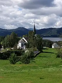 Varaldsøy Church (Norwegian: Varaldsøy kyrkje) is a parish church of the Church of Norway in Kvinnherad Municipality in Vestland county, Norway. It is located on the island of Varaldsøy. It is the church for the Varaldsøy parish which is part of the Sunnhordland prosti (deanery) in the Diocese of Bjørgvin. The white, wooden church was built in a long church design in 1885 using plans drawn up by the architects Conrad Fredrik von der Lippe and Hans Heinrich Jess. The church seats about 390 people.[1][2]