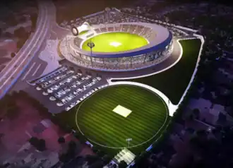 Varanasi International Cricket Stadium is a currently in-construction cricket stadium in Varanasi, Uttar Pradesh, India. It's expected to be completed by December 2025.[1] The venue will have a seating capacity of 30,000 spectators which can be extended up to 40,000.[2] Upon completion, it will be the fourth international cricket stadium in Uttar Pradesh after Green Park Stadium in Kanpur, Ekana Cricket Stadium in Lucknow and Saifai International Cricket Stadium in Etawah.