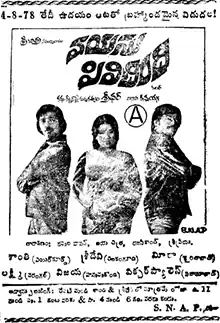2. ^ "Vayasu Pilichindi (Telugu) (Colour)". The Gazette of India. 10 March 1979. p. 981. Archived from the original on 29 July 2024. Retrieved 29 July 2024 – via Internet Archive.