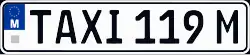 • Taxis: letters TAXI and after three numbers one letter M or G (e.g., TAXI 001M for island of Malta or TAXI 001G for Gozo)