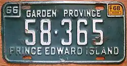 - ^ Tanner, Eric N. "Prince Edward Island Passenger License Plates". allaboutlicenseplates.com. Retrieved December 17, 2020.