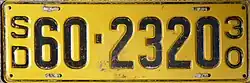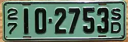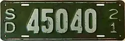 - ^ a b c Tanner, Eric N. "South Dakota Passenger License Plates". allaboutlicenseplates.com. Retrieved November 11, 2020.