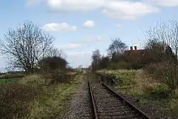 A single-track freight line from Bletchley to Bicester was retained and then abandoned in place in 1993.[22] Until late 2019, this track had remained rusted beyond use and in overgrown state, albeit with modern signage still warning travellers to watch for approaching trains. From early 2020, the route has been cleared as part of engineering works on the East West Rail project. Of the station itself, the stationmaster's house remains as a private residence, and the station ticket office has become a private garage. The platform edges have also survived in a dilapidated state. The stationmaster's house's garden occupies the former Metropolitan trackbed.[23]