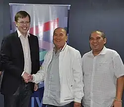 As the company developed, the cousins recruited Tony Ocampo to help manage the company while Del Rosario handled music deals and Ilacad acted as producer for the records Vicor released.[3] The company oversaw the release of the first mini-LP in the Philippines in 1970, Tirso Cruz III's album Maria Leonor Theresa, which culled songs from Cruz's previous album PIP.[5] Del Rosario also signed folk singer Freddie Aguilar with the company in the 1970s.[6] By the later part of the decade, Ilacad left Vicor to form a new company called Canary Records (later renamed OctoArts International), with Del Rosario also leaving the company soon after to pursue film production; Ocampo eventually formed Ivory Records in 1983 which later bought Vicor Music Corporation.[3]