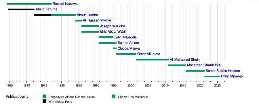 Philip MpangoSamia Suluhu HassanMohamed Gharib BilalAli Mohamed SheinOmar Ali JumaCleopa MsuyaSalmin AmourJohn MalecelaIdris Abdul WakilJoseph WariobaAli Hassan MwinyiAboud JumbeAbeid KarumeRashidi Kawawa