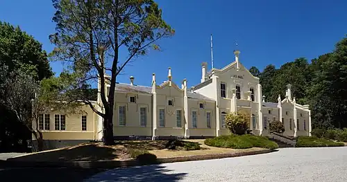 The Victorian School of Forestry (VSF) was established in October 1910 at Creswick, in the Australian state of Victoria. It was located at the former Creswick Hospital, built in 1863 during the gold rush. The creation of VSF was one of the many recommendations of a Royal Commission held between 1897 and 1901 into forest degradation.[1] The first tertiary forestry school in Australia, VSF was administered by the Forests Commission Victoria (FCV) until 1980, when VSF amalgamated with the University of Melbourne to become that institution's School of Ecosystem and Forest Sciences. From 1910 to 1980, 522 students completed the Diploma of Forestry at VSF.[2]
