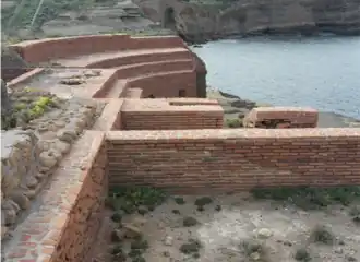 The villa occupied most of the peninsula of Punto Eolo, extending over an area of 300x100 m. The urban complex included the Imperial villa, the port, the fishery[8] and water cisterns.[9] The villa itself had three main sectors: