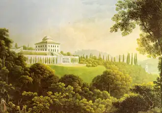The villa was built for himself by the Neoclassical architect Luigi Cagnola, and after his death in 1833, completed by his pupil Francesco Peverelli.