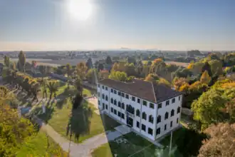 Villa Loredan was originally part of a single property which included the opposite building, from which it is now separated by a wire fence. It was therefore a villa complex consisting of two symmetrical building blocks, separated by a courtyard and closed all around by a boundary wall, owned by the Venetian patrician Loredan family.[1]