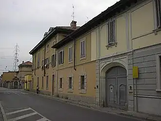 The complex is located in Pobbia, once included in the municipality of Moncucco.[1] Pobbia, dates back to 1457, as a farm named Pobia. In 1459, nobleman Francesco Pestagalli, owner of Cascina Pobia, was given a privilege of tax exemption for the farm by the Duchess Bianca Maria Visconti.[2] The mansion, owned by Pestagalli, was built in Pobbia in the first half of the eighteenth century.[2] In the nineteenth century, Pestagalli took over Della Somaglia's finances, and since 1890 the villa became the property of the Balconi family, who still owned the property by the end of the twentieth century. Balconi then commissioned a substantial restoration, with the addition of habitable floors, balconies and dormers. Until the eighties, the house counted with a chapel open to the public, built in 1681 by Anna Crespi Recalcati as help for people with children. It is now in ruins.[2][3]