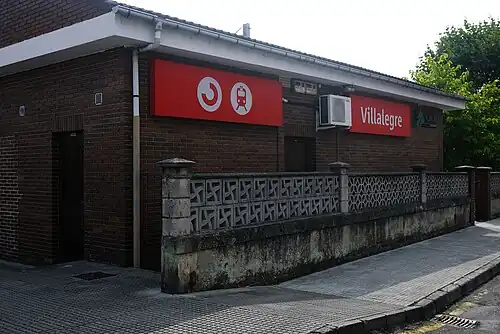 The original Villalegre station consisted of a large wooden building with an adjoining house for the worker who raised and lowered the gate at the nearby railway crossing. As well as being used by commuters working in the industrial area, it originally played an important role in the transport of goods unloading logs and beetroot for the local factories and loading coal bound for San Xuan to be exported by ship.[5]