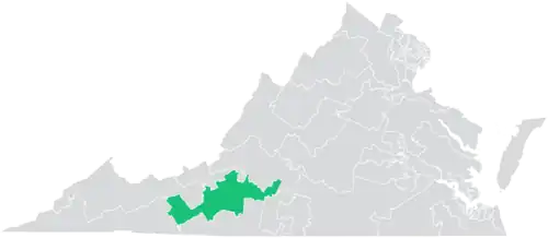 The district overlaps with Virginia's 5th, 6th, and 9th congressional districts, and with the 6th, 7th, 8th, 9th, 12th, 17th, and 22nd districts of the Virginia House of Delegates.[4]