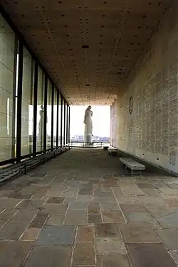 The Virginia War Memorial[1] is a 1955 memorial in Richmond, Virginia, originally dedicated to Virginians killed in World War II and the Korean War. In 1980, the Shrine was enlarged to honor those Virginians killed in action in the Vietnam War. In 1996, the names of Virginians killed in action during Desert Storm/Desert Shield were added. Today, there are nearly 12,000 Virginians whose names are engraved on the Shrine of Memory's glass and stone walls. Reflecting the different character of war today, Virginia has created a special Memorial Shrine to honor the over 250 Virginians killed in the Global War on Terrorism.