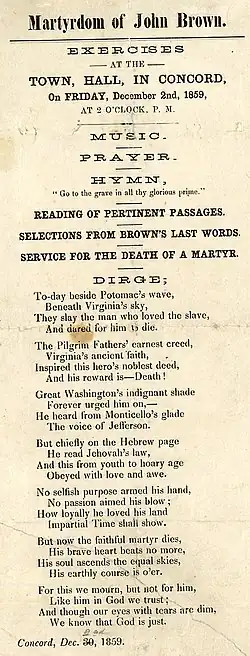 153. ^ a b Redpath, James (1860). "Services at Concord". Echoes of Harper's Ferry. Boston: Thayer and Eldridge. pp. 437–454, at pp. 451–454.
