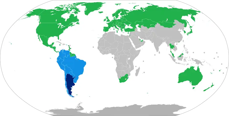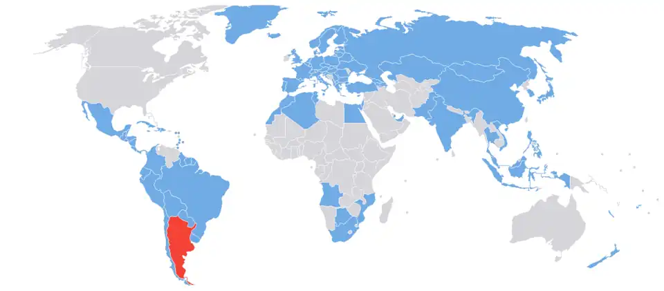 Visitors to Argentina must obtain a visa from one of the Argentine diplomatic missions unless they are citizens of one of the visa-exempt countries.[1]