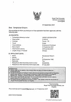 The e-Visa application also became available from February 2019 in some of the consulates of Thailand abroad.[15][16][17][11][18]