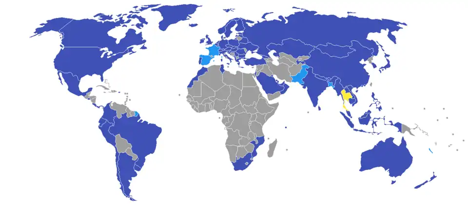 Citizens of the following countries and territories may enter Thailand for business and tourist purposes without a visa for stays up to the duration listed:[6]