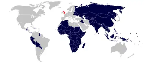 Citizens of the following countries may travel to the UK without a visa if they hold a valid Irish visa endorsed with BIVS:[41]