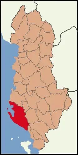 Vlorë District (Albanian: Rrethi i Vlorës) was one of the 36 districts of Albania, which were dissolved in July 2000 and replaced by 12 newly created counties. It had a population of 147,267 in 2001, and an area of 1,609 km2 (621 sq mi).[1] It is in the south-west of the country, and its capital was the city of Vlorë. Its territory is now part of Vlorë County: the municipalities of Vlorë, Selenicë and Himara (partly). Its population included a Greek minority.[2][3]