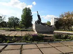 During the 2022 Russian invasion of Ukraine, the city saw shelling and fighting as part of the Battle of Mykolaiv and the Battles of Voznesensk.[10][11] The city was a key objective for Russian forces, who sought to capture an important intersection on the route between Mykolaiv and Odesa, and cross the Southern Buh river immediately southwest of the city. Securing this intersection was an essential prerequisite for any subsequent offensive towards Odesa, as it would allow Russian tanks and armored fighting vehicles access to the most suitable highway to the city.[12] The battle began on 2 March, when a Russian armored column was defeated by Ukrainian forces in the vicinity of Voznesensk, in a battle which the Wall Street Journal described as "one of the war's most decisive routs" up to that point.[12][a][14] The Ukrainian army, in cooperation with local farmers, destroyed a strategically important bridge, over which the Russians aimed to cross the Southern Bug.[15] Additionally, the Ukrainian fighters destroyed around 30 Russian tanks and armored vehicles and one helicopter, thereby preventing any further Russian advance towards Odesa and a nearby nuclear facility.[16]