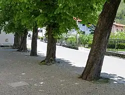 Vrhpolje is the site of two unmarked graves from the Second World War. The Church Grave (Slovene: Grobišče ob cerkvi) is located in the middle of the tree-lined avenue by the parish church. It contains the remains of a German soldier killed near Vipava during the war.[4] The Zavetnik Farm Grave (Grobišče Zavetnikov grunt) lies in the woods below a vineyard, about 1 kilometer (0.62 mi) north-northeast of the parish church. It contains the remains of the Slovene civilian Marija Krapež from Malo Polje, who was murdered by the Partisans in November 1943.[5]