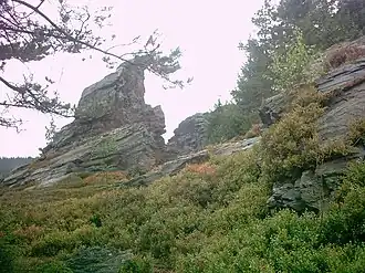 Vysoký kámen (German: Hoher Stein) is a hill and a nature monument in the territory of Kraslice in the Karlovy Vary Region of the Czech Republic. It lies in the Elster Mountains (part of the Fichtel Mountains), 1 km from the Czech-German border.