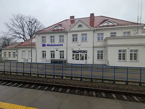 Władysławowo railway station is a railway station serving the town of Władysławowo, in the Pomeranian Voivodeship, Poland. The station opened in 1922 and is located on the Reda–Hel railway. The train services are operated by Przewozy Regionalne.