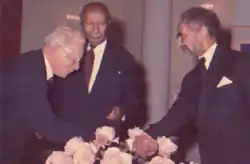 William Donald McClure (April 28, 1906 – March 27, 1977) was an American Presbyterian missionary in Africa. Born in Blairsville, Pennsylvania, McClure graduated from Westminster College, New Wilmington, Pennsylvania. He began teaching in Khartoum, Sudan in 1928, returning to the United States three years later to study at Pittsburgh Theological Seminary. After graduation and ordination in 1934, McClure and his wife, Lyda, began work in Doleib Hill, Sudan with the Shulla people. During this time, McClure began to question the traditional missionary approach to indigenous people. McClure was convinced that a large staff employed for a limited time would result in a self-sustaining, self-governing, self-propagating church. In 1938 he initiated a new mission with the Anuak people at Akobo on the Sudan-Ethiopia border. A team of specialists in education, agriculture, medicine and evangelism were expected to work for 15 years.[1] Although never fully staffed and interrupted by World War II, the Akobo mission became so successfully established that in 1950 the McClures were able to open new work among the Anuaks in the Ethiopian village of Pokwo. By 1960, McClure was directing a third station at Gilo River while serving in Addis Ababa as the general secretary of the American Presbyterian Mission.[2] Ethiopian Emperor Haile Selassie I, who had long supported McClure's pioneering work, requested that the American mission replicate the Anuak project among Somali nomads in the Somali border town of Gode, Ethiopia. The American Presbyterian mission declined to support this new cooperative venture between church and state, so Don and Lyda McClure began by themselves with the help of their longtime mission supporters.[3] McClure was shot and killed by guerrillas in Gode on March 27, 1977. Don McClure was the first entrant in the book of Presbyterian martyrs.[4] The biography of Don McClure called "Adventure in Africa" by Charles Partee has been out of print since the early 1990s, is now available in an electronic version.