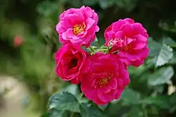 During the Second World War Wilhelm Kordes II crossed the East Asian Rosa wichurana with the Japanese Rosa rugosa eventually to obtain a new species, Rosa kordesii, able to withstand the harsh winters of north Germany. From it he later bred such famous post-war varieties as 'Parkdirektor Riggers,' 'Leverkusen,' Hamburger Phönix' and 'Heidelberg.' "The dark, glossy foliage of many modern roses can be traced back to 'Kordesii'."[1]