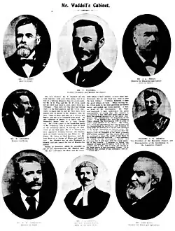 The ministry covers the period from 14 June 1904 until 29 August 1904.[3] Waddell's Progressive Party was defeated at the 1904 state election,[4] however remained in office until parliament sat and provided supply for the incoming government.[5] Waddell was succeeded by Joseph Carruthers and his Liberal Reform Party.
