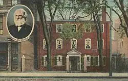 American Revolutionary War General Peleg Wadsworth built the house between 1785 and 1786, the first wholly brick dwelling in Portland.[3] Wadsworth raised ten children in the two-story structure with a pitched roof before retiring to the family farm in Hiram, Maine, in 1807. His daughter Zilpah and her husband Stephen Longfellow IV were married in the house. Their son, Henry Wadsworth Longfellow, was born nearby at the home of an aunt, Stephen's sister, on February 27, 1807. The home was a three-story Federal architecture-style home at the corner of Fore and Hancock Streets.[4] Young Longfellow did not move with his parents to the Wadsworth-Longfellow House until he was eight months old, but spent the next 35 years there.[5] The Longfellows added today's third story in 1815.