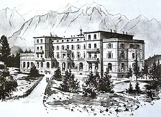 The hotel was founded in 1877 as the "Hotel Waldhaus" at a time when the tourism potential of the Swiss Alps was leading to rapid growth in the sector. In 2008, following a major building programme, the Hotel Waldhaus was rebranded as the "Waldhaus Flims Mountain Resort & Spa".[1] In 2015 the business was forced by heavy indebtedness into bankruptcy and 900 shareholders lost their investment, although confidence was expressed that following financial restructuring, likely to include the sale to second home-buyers of holiday apartments included in what had by this time become a major hotel complex, the hotel would survive.[2]