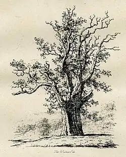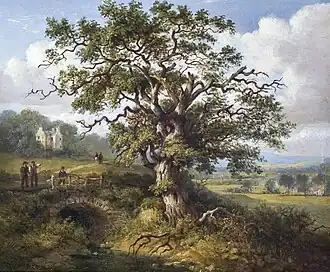 ![]() Jane Nasmyth's painting of the oak, c. 1850 | |