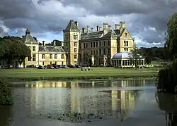 By 1969 the estate had deteriorated and was eventually sold to Lord Leslie Charles Field in 1970. During the early 1970s the entire estate was restored to its former glory with the main hall receiving extensive renovations between 1970 and 1972. Walton Hall was the preferred residence over Pitfour Castle (also owned by Lord Field) and as such it was used as the main family home throughout the 1970s. When Lord Field retired to his home on the Isle of Man at the end of the decade, the entire estate was sold to the performer Danny La Rue who converted the main house to be used as a hotel. In the 1970s, La Rue spent more than £1 million on the purchase and restoration of Walton Hall and signed it over in 1983, as he could not manage it and his career, to a pair of Canadian con men.[2] La Rue had given control of the hotel to the two Canadians with a promise of further investment with the retention of La Rue's name on the hotel itself. This eventually led to a police investigation where La Rue was cleared of any suspicion but discovered he had lost more than £1 million.[3] The con men had deeply bankrupted La Rue but he insisted in continuing to work to pay off the debts incurred rather than retire.[2]