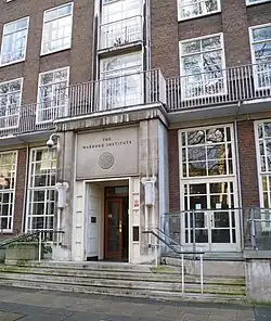 In 1933, under the shadow of Nazism, the institute was relocated to London, where, with the aid of Lord Lee of Fareham, Samuel Courtauld, and the Warburg family, it was installed in Thames House in 1934. The institute moved to the Imperial Institute Buildings in 1937. In 1944 it became associated with the University of London.[3]