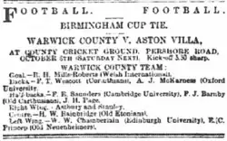 - ^ "Warwickshire Cup Tie - Semi-Final". Birmingham Post: 5. 26 May 1890.