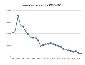 Wasalandia's visitor number peaked in 1990 which then declined to 26,000 visitors by the end of last summer in 2015