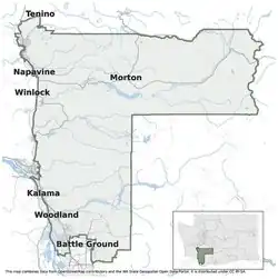 The district includes a southern section of Thurston County, most of Lewis and Cowlitz counties, and the northern tip of Clark County.[1]