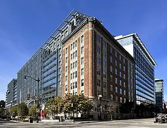 Further complicating matters was a $30 million bid in August 2005 by Philadelphia-based real estate development company Lubert-Adler Management to purchase a 0.5-acre (2,000 m2) parcel of land on the corner of 9th Street NW and Massachusetts Avenue NW. This land was owned by a trade union, the United Association of Journeymen and Apprentices of the Plumbing and Pipe Fitting Industry (the Pipefitters), and the union's American Federation of Labor Building, its historic, 90-year-old headquarters occupied the site. Marriott, Gould, and the city hoped to convince the Pipefitters to sell their building for the hotel development. To prevent the Lubert-Adler purchase, WCSA placed a $900,000 deposit on the Pipefitters' property, and pledged that the historic building would be incorporated into the new hotel rather than demolished. On August 22, the Pipefitters agreed to sell their 145,000-square-foot (13,500 m2) parcel to WCSA for $30 million.[23][24] This sale significantly strengthened the appeal of the Williams-preferred site.