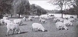 When Olmsted first examined the property, he saw a field filled with bare trees and decided to maintain its character by creating a meadow surrounded by trees. His plan for the park called for sheep to graze as a means of keeping the grass short. Cornell convinced Olmsted to include sporting areas, although Olmsted wanted a more natural feel to the park, which included a 13-acre (53,000 m2) lake.[7] The Western division was renamed Washington Park in 1881.[6]