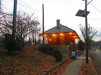 Watchung Avenue (known as Park Street until April 1, 1919) is a New Jersey Transit station at the intersection of Watchung Avenue, Watchung Plaza, and Park Street in Montclair, New Jersey along the Montclair–Boonton Line. The Watchung Avenue station is on an elevated embankment between Watchung Plaza and Park Street. The outbound platform faces the plaza, while the inbound platform and the station house are on the Park Street side. The station house has a waiting room with a bathroom and a former post office and ticket booth. Service to and from this station is weekdays (Monday to Friday) only, with all service stopping at intermediate points.[9]