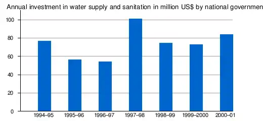 Annual investment in WSSUS$0.55/capita (Average 1993/95–2000/01)[8][9]