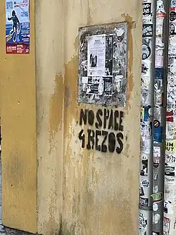 In addition to protests organised by local groups, activists from Greenpeace and British political campaign group Everyone Hates Elon unfurled a large banner in Piazza San Marco on June 23; the banner featured an image of Bezos laughing, along with the slogan "If you can rent Venice for your wedding you can pay more tax."[18][19] A statement from the two groups explained that although Bezos is one of the wealthiest people in the world, he "is reported to pay a 1.1% true tax rate",[18] and that the aim of the protest was to highlight the comparatively low tax contributions of billionaires, who nonetheless "exacerbat[e] the climate crisis with environmentally unsustainable lifestyles".[20][21] The banner was soon removed by local police.[22]