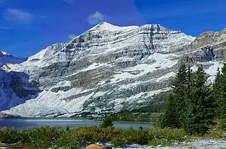 Wedgwood Peak is a 3,024-metre (9,921-foot) mountain summit located in Mount Assiniboine Provincial Park, in the Canadian Rockies of British Columbia, Canada. Its nearest higher peak is Mount Assiniboine, 2.0 km (1.2 mi) to the south.[1] The mountain is situated southwest of Lake Magog and 2 km (1.2 mi) south of Sunburst Peaks.[3] Precipitation runoff from Wedgwood Peak drains east into Lake Magog, or west into Wedgwood Creek which is a tributary of the Mitchell River.[3]