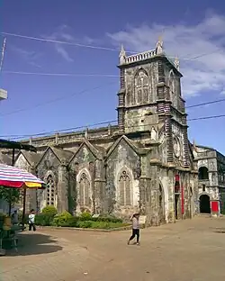 From 1869 to 1879, the French built a Gothic-style 15 metre Catholic church (涠洲天主教堂) in Shengtang Village (盛塘村; pinyin: shèngtáng cūn), Weizhou. Weizhou Chengzai Church (城仔教堂) was built in 1880, also by French Catholics.