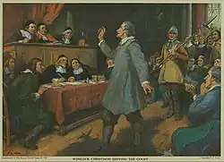 Seeking martyrdom, Christison and Leddra also returned to Boston. Leddra was arrested in late 1660 or early in 1661 while visiting some friends in prison. He was tried and hanged in March, 1661.[6] Christison was arrested while attending Leddra's trial. He was arraigned on 14 March 1661, the day that Leddra was executed.[7] His trial took place on 3 April and Governor John Endicott sentenced him to be hanged on 13 June.[8] The Quakers believed that during an altercation between the accused and Humphrey Atherton at the trial, Christison prophesied the outcome of his trial as well as the circumstances of Atherton's untimely death.