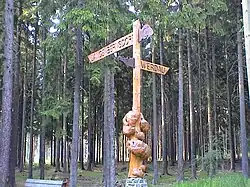 The common border of the states of Saxony and Thuringia runs from Teichwolframsdorf going in a north-south direction along a road in the direction of Reudnitz through the forest.