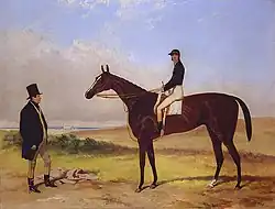![]() 1853 painting by Harry Hall of West Australian with jockey up and trainer | |