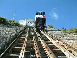 The West Cliff Railway, or West Cliff Lift, is a funicular railway located on West Cliff in the English seaside resort of Bournemouth. The line serves to link the seaside promenade and beach with the cliff top and the town behind.[1]